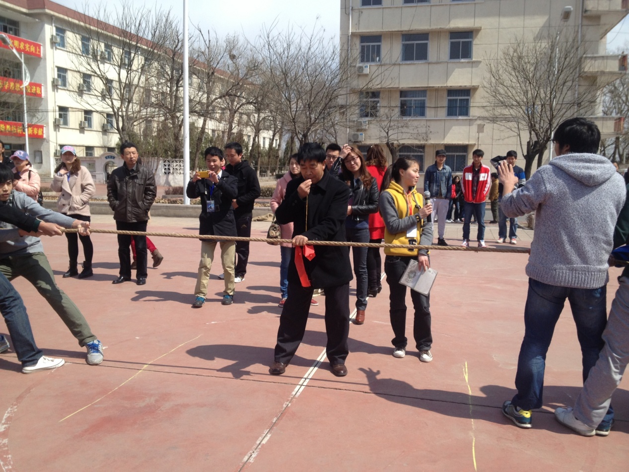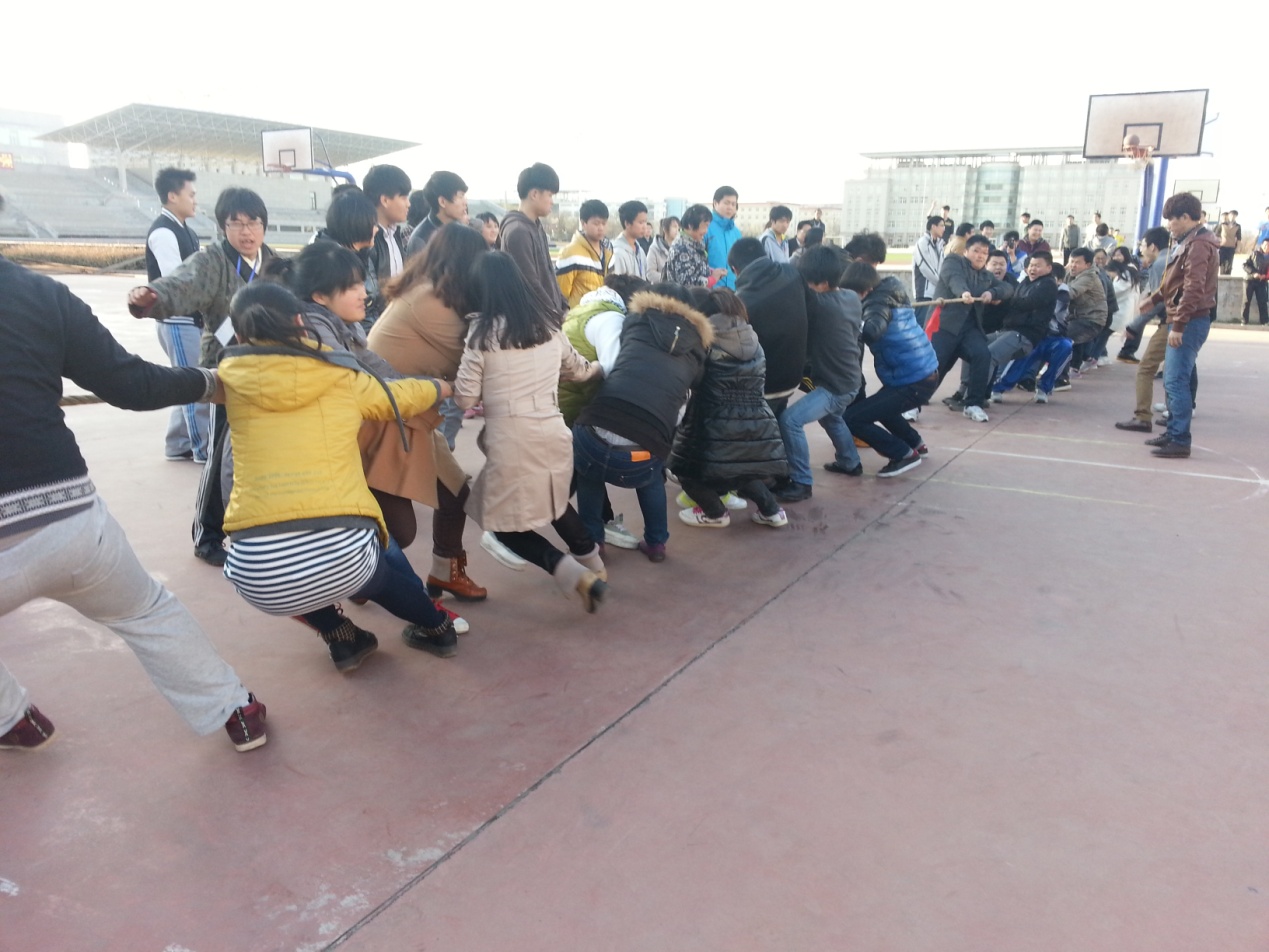 为进一步丰富我院校园文化生活,发扬北译学子积极向上的团队精神,同时也为了加强各年级各班级同学间的联系交流,增强同学们的集体荣誉感和组织凝聚力。特此,我院团委学生会体育部秉承“团结、协作、共赢”的理念,举办了第四届“团结杯”拔河比赛,并于2013年4月10日12:30在校小篮球场举办了开幕仪式。出席本次开幕式的领导有:北京翻译研修学院黄孝平副院长,学工处刘刚处长。黄孝平副院长做了开幕式致辞,他们亲自到场为拔河比赛的队员们加油助威,两位领导各自为我们的两个赛场吹响了第一哨,北京翻译研修学院第四届“团结杯”拔河比赛正式拉开了帷幕!