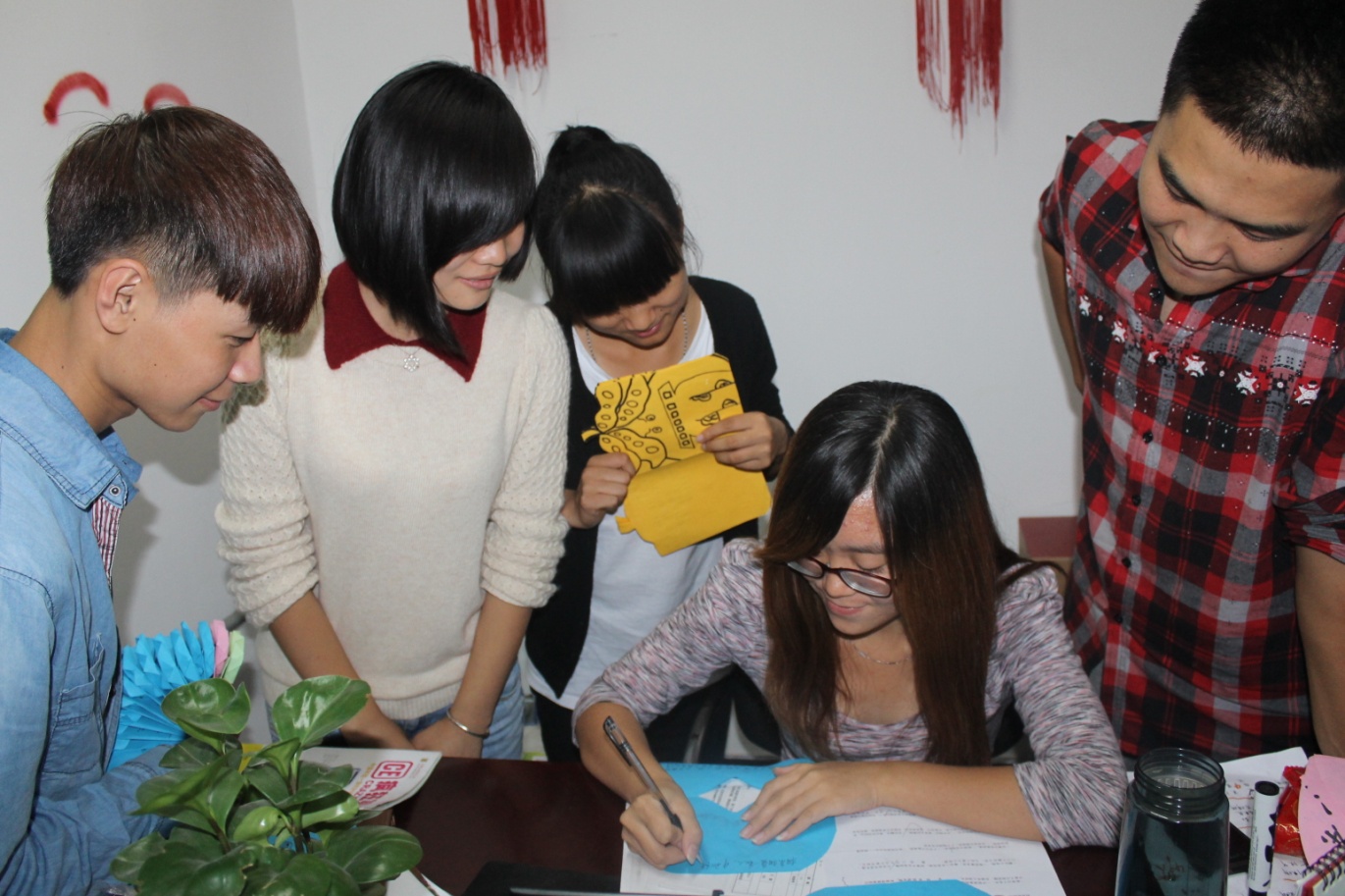 各部长们的中秋贺卡的制作以“简洁”、“温馨”、“阳光”、“真情”为主题,充分的体现了我院团委、学生会是一个团结、温馨、有爱的大家庭。