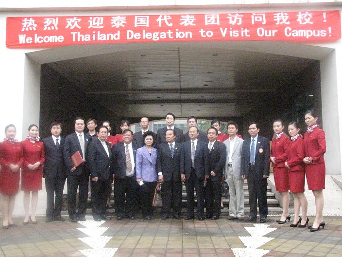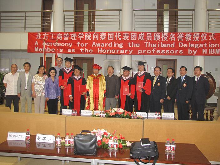 在2009年9月4日上午10时,在我校园区国际会议中心正式组织了由泰王国工业部顾问委员会主席光·娄靠先生一行泰国代表团的见面会,会议由学院各处室中层领导各一人,二级学院各个学院各1到3位领导,会议宣布学院向泰国代表团颁授名誉教授仪式。