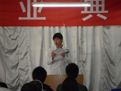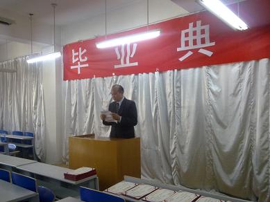 李院长宣读毕业生表彰决定和致毕业生一封公开信。向学生们表达了全体教职员工对毕业生的叮嘱。号召同学们认清形势,抓住机遇,培养自己在将来的工作和学习中,要拥有“梅花香自苦寒来”的进取心,“尽以与人,尽以为人”的宽阔胸襟和“疾风不择日,骤雨不终潮”的乐观态度。