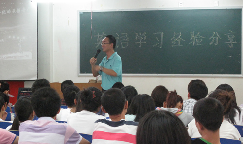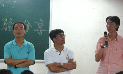2010年8月27日下午,北京大学韩语系优秀毕业生王金甫和疯狂英语专业主讲老师吕宏展为北译同学做了英语学习经验分享。