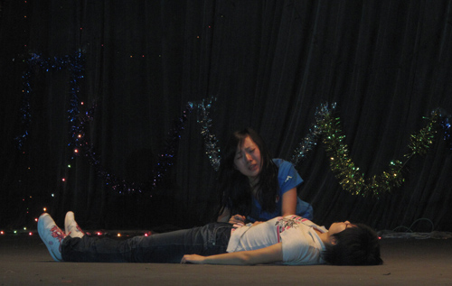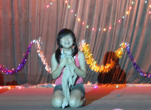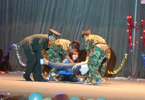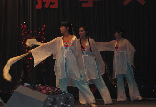 2010级疯狂英语专业的同学以舟曲灾难为背景,自编自导了集感恩父母、老师、人民子弟兵为主题的话剧《带着感动出发》,同学们全情投入的真情演绎,让在场的同学和老师无不感动落泪,博得了大家的阵阵掌声。