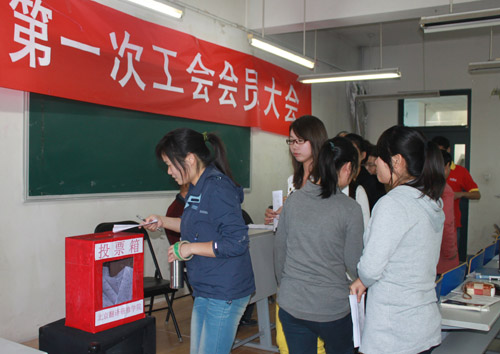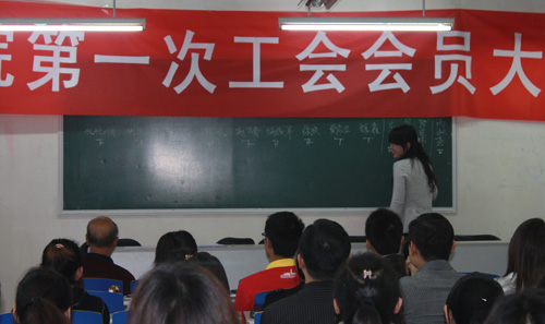 经昌平区教育工会批准,2010年9月27日下午,北京翻译研修学院第一次工会委员选举大会如期举行,校领导卢成交院长、王占禄书记、李瑞琴院长、许兆江主任、戴艳娟主任出席参加了此次选举大会。
