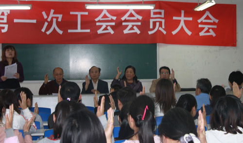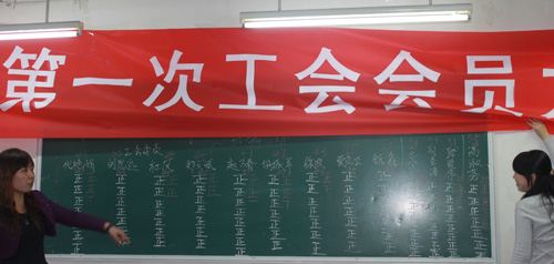 全体员工举手表决,一致通过工会选举法